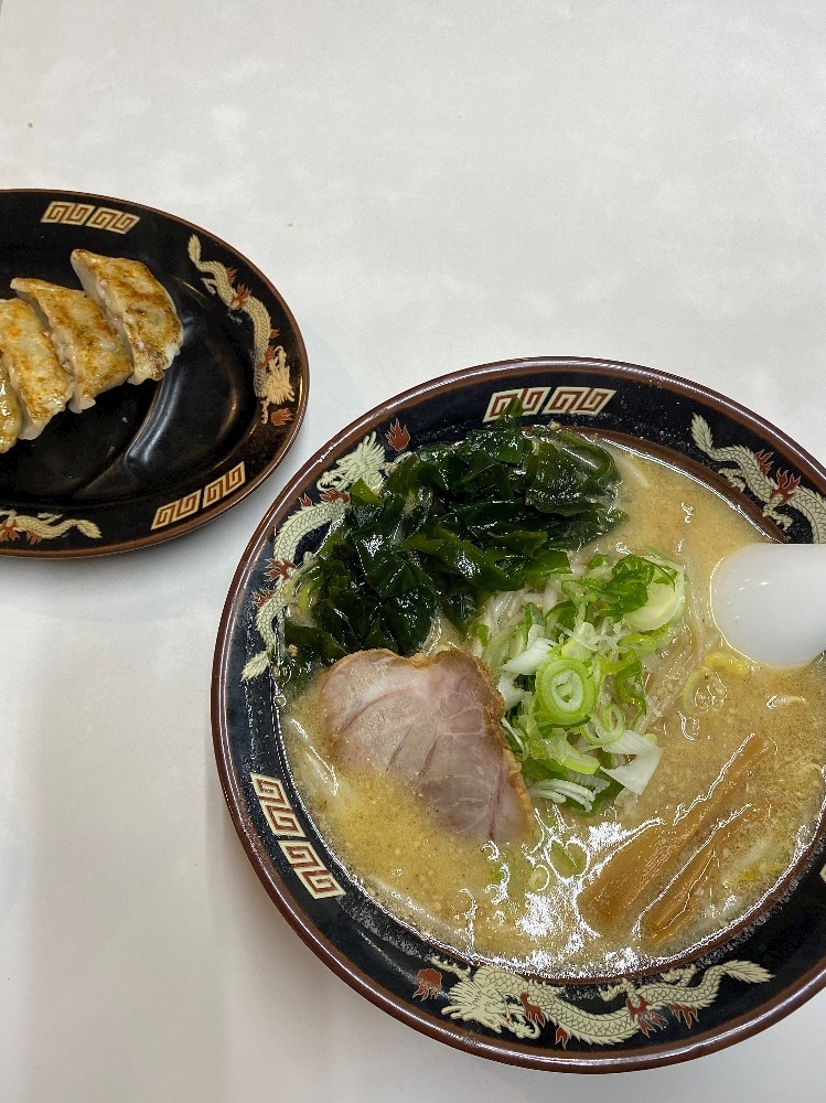 ワカメ味噌ラーメンと餃子🥟