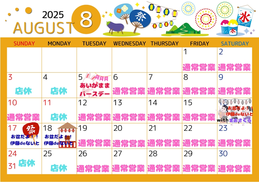 8月カレンダー🌞🌴🌺✨ - あいか🐰RANA 池袋🐰 - すなっくばー Re:らな - 池袋西口(北)のパブ/スナック