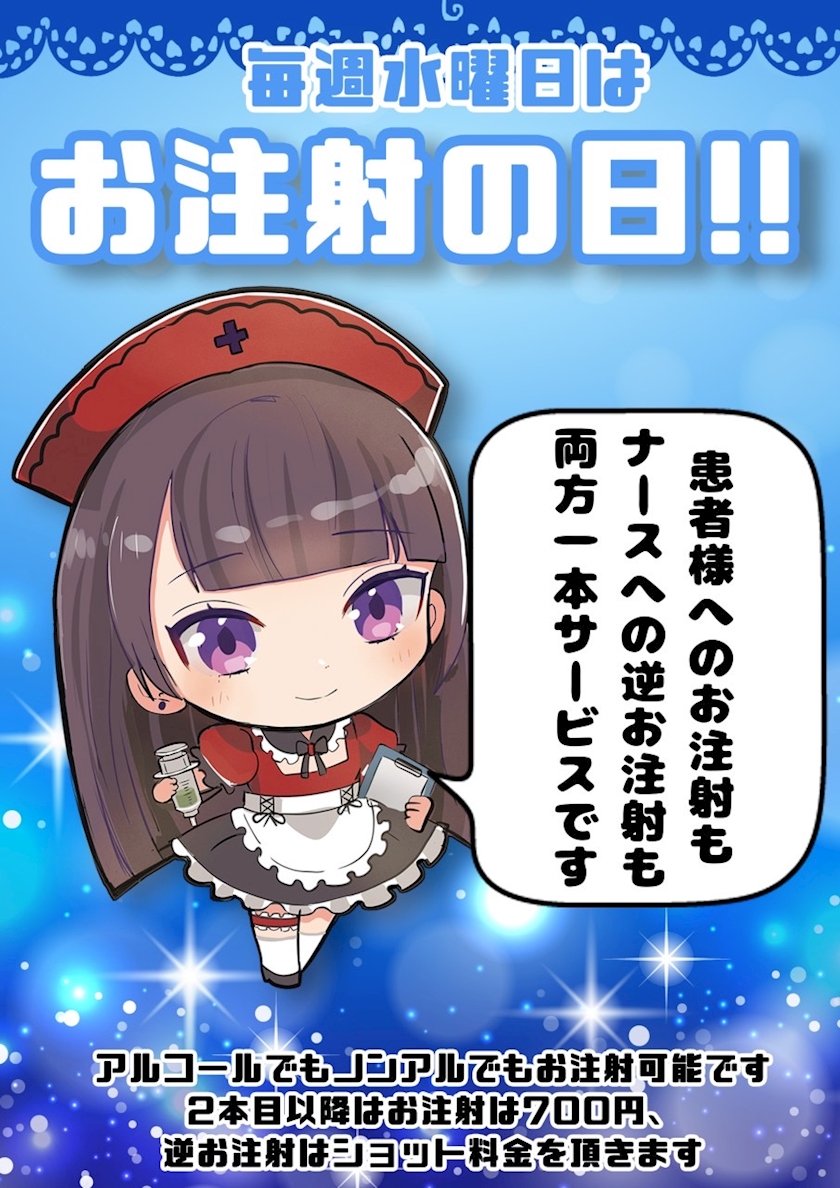 本日水曜日ということでお注射無料です💉