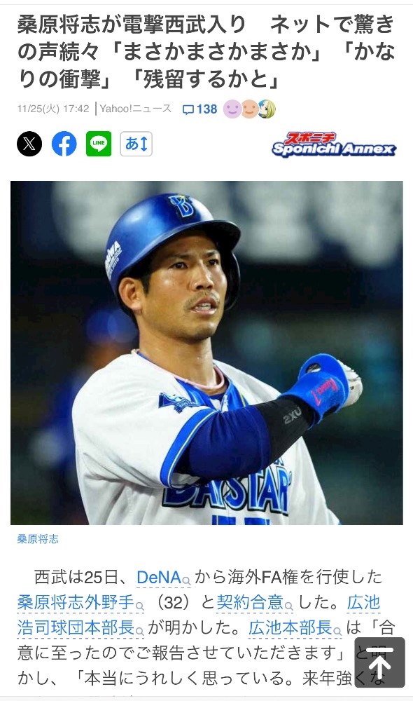 DeNAベイスターズ桑原選手がFA移籍。