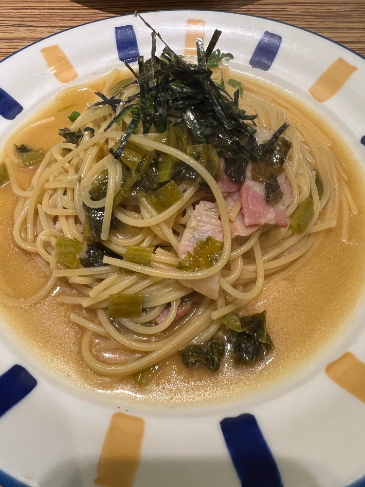 高菜とベーコンの醤油ソース