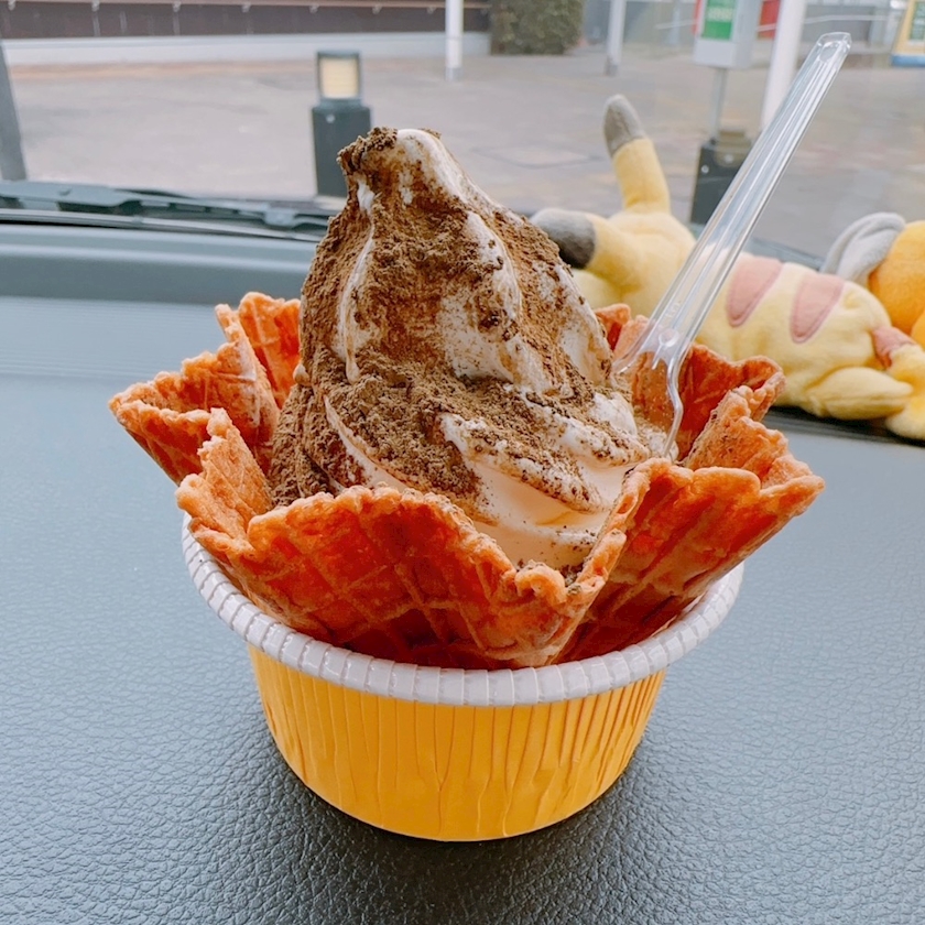 昔は醤油味もありました。粉ではなくて、埼玉の醸造で作られたご当地醤油が液体状のままかかってます。醤油×ソフトクリームの相性が良くて、ほどよいあまじょっぱさがたまらなかった。あと風に強い(!)