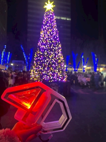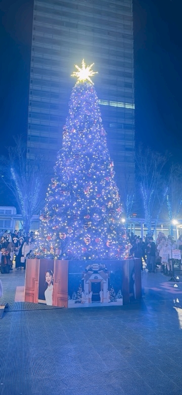 けやき広場でコラボツリーやってて、しおりんが写ってるのみえますか??👀