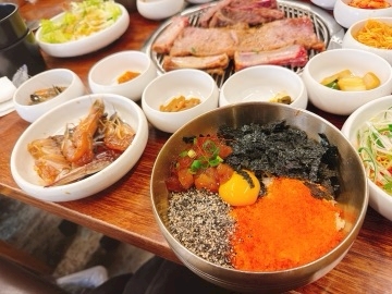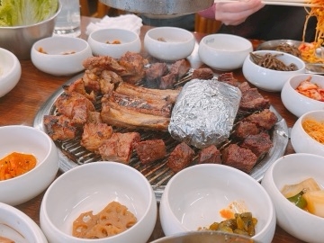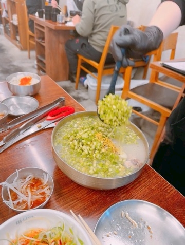 この小さい小鉢とか、今テーブルに乗ってるもの全部がパンチャン(無料のおかず)でとても量が多くてびっくり🫢