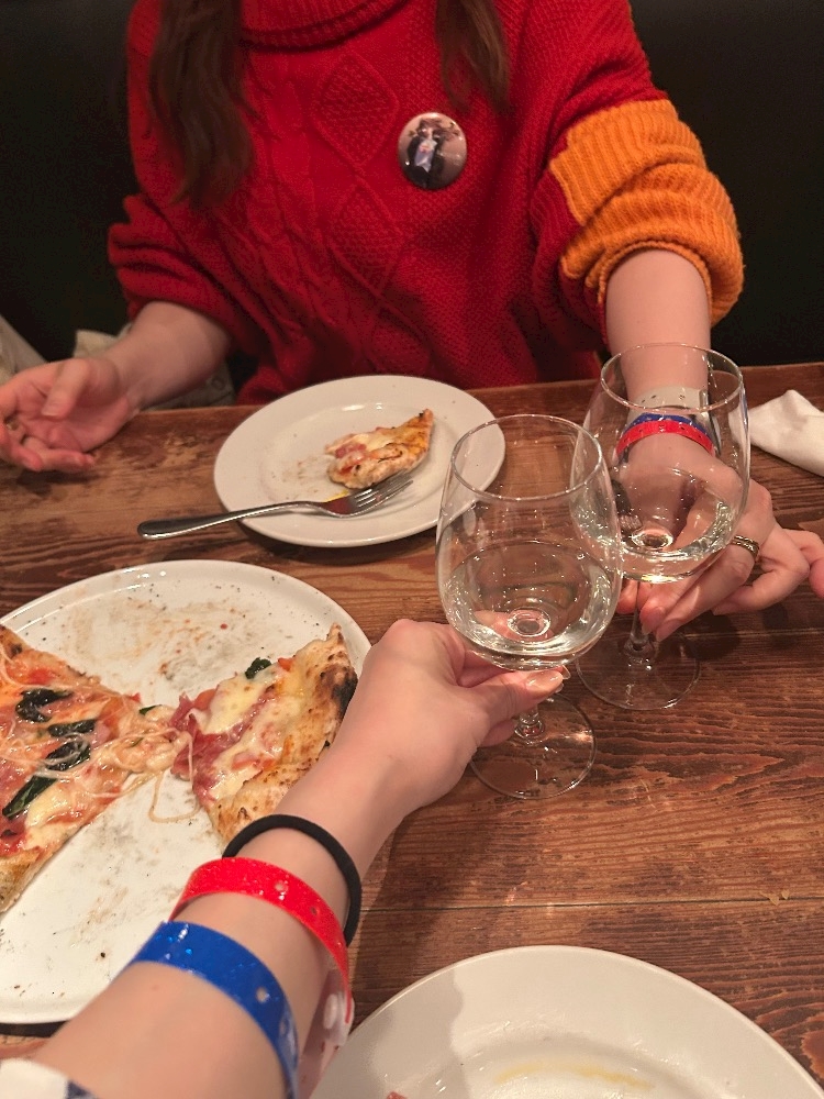 ⑥のステージが終わった後、友人とピザ食べながら感想言い合って