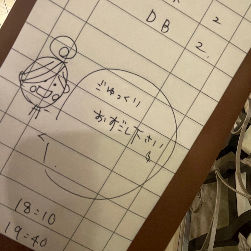 今日入ったお店の人が書いてくれてたやつ!