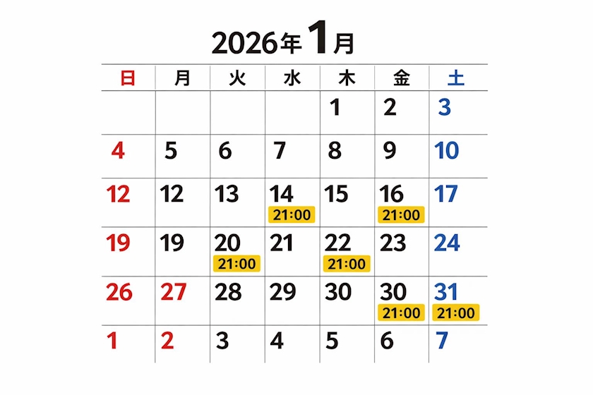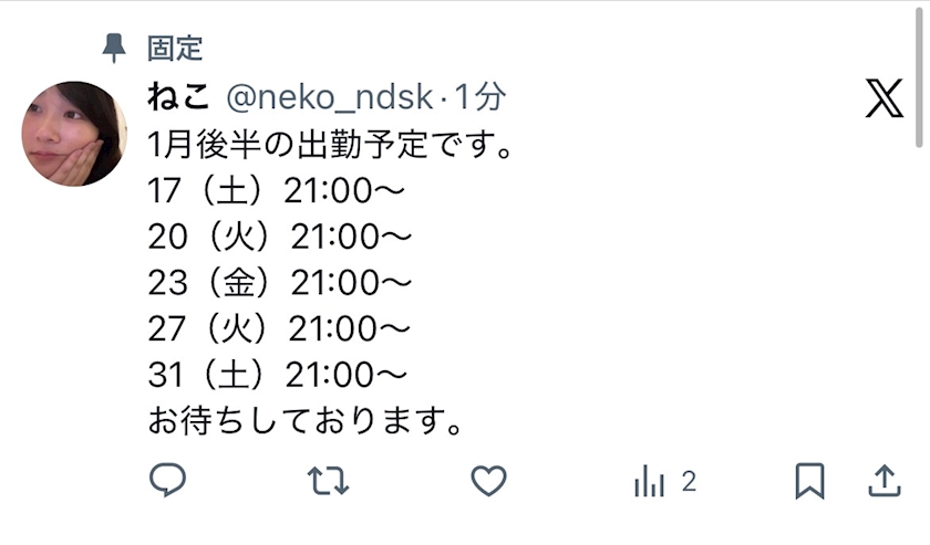 1月後半出勤予定📅