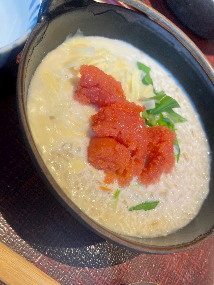いつもクリーム明太雑炊にチーズ