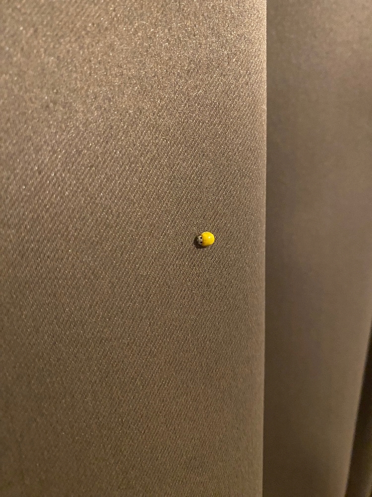カーテンに何か着いてるな?と思ったら虫で変な声出たけど、調べたらキイロテントウとかいう幸運呼ぶとの噂のやーつでした。
