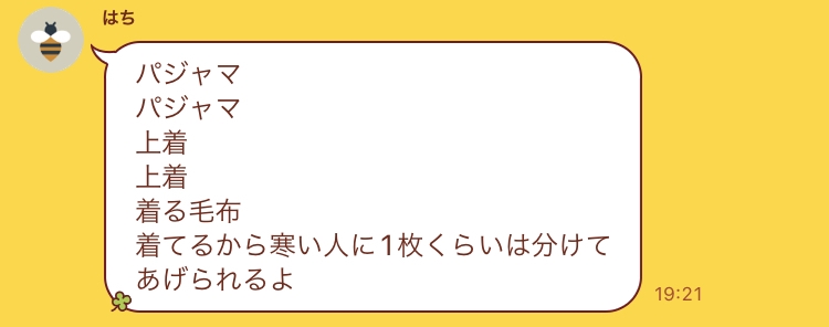 在宅終わりの友達からのLINEで