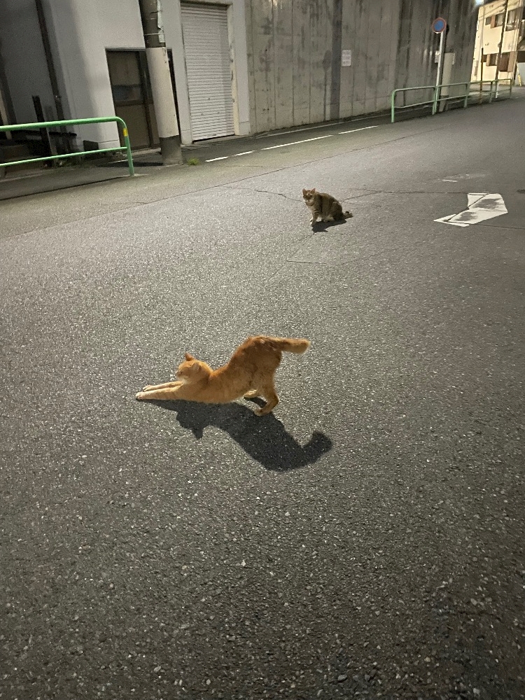 仕事終わっての帰り道で野良にゃん🐱🐾がいたので