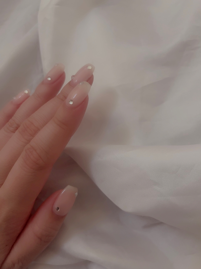 ほんのりミルクベージュに小さなストーンを乗せたデザイン♡