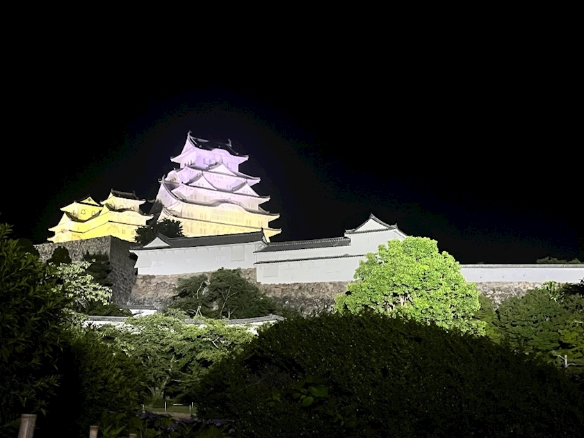 姫路城をライトアップしてる
