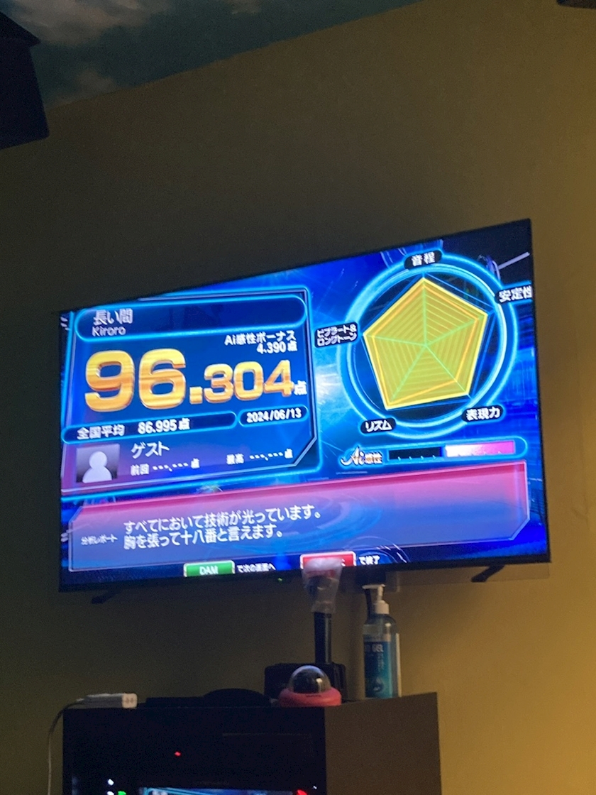先日お店で初めて採点を入れて歌った曲が