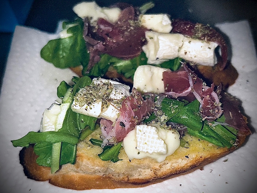 ルッコラと生ハムとチーズのブルスケッタ