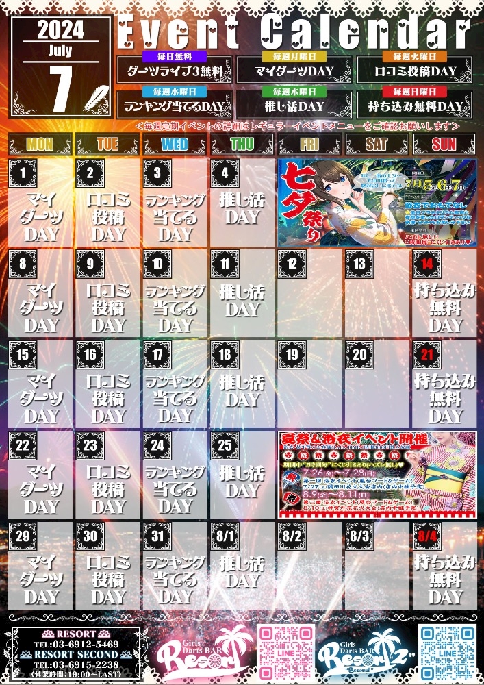 浴衣で夏祭り&隅田川花火大会観戦7/27🏮👘🎆🎇 - STAFF🩷池袋西口リゾート1st🏝️🎯 - Resort(リゾート)GIRLS DARTS BAR・リゾート - 池袋西口のガールズバー