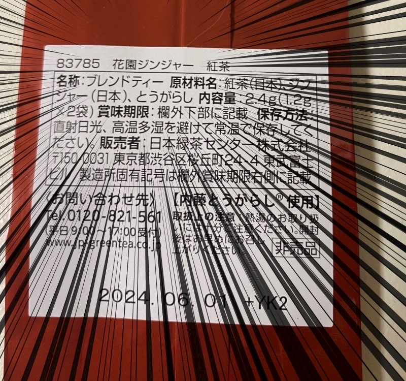 としょうもないダジャレを思いつき、お茶のパッケージを裏返してみると。