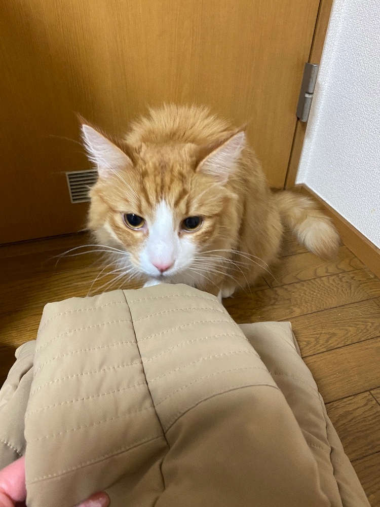 ベージュの、中綿のコートがふかふかツヤツヤになって、響ご満悦❤️