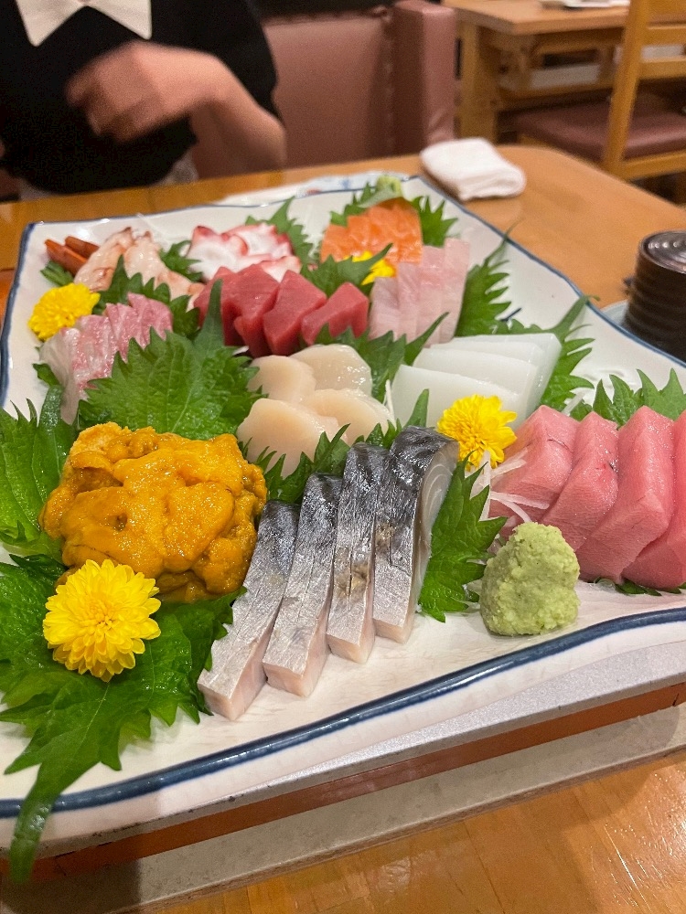 夜はみんなでお刺身と