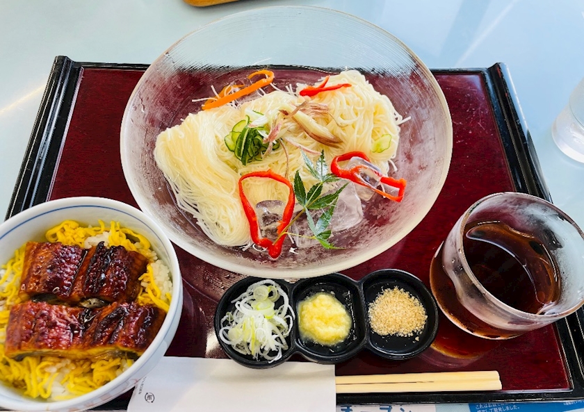 お昼は鰻とそうめん💗