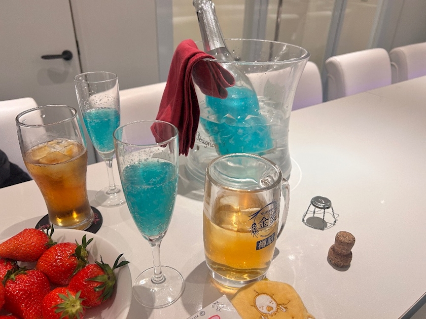 青のキラキラシャンパンで乾杯できて嬉しかったです🥺