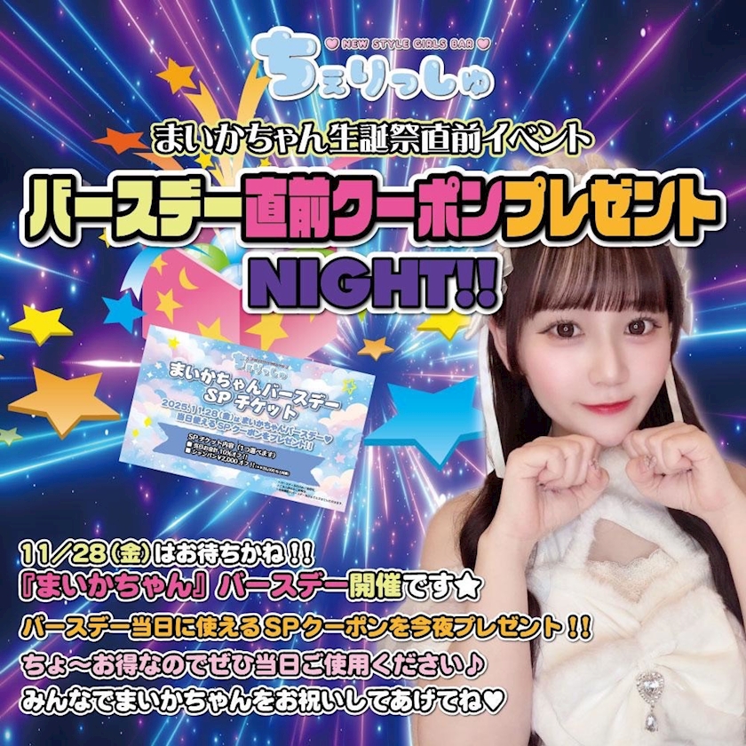 今日は、まいかちゃんバースデークーポンが