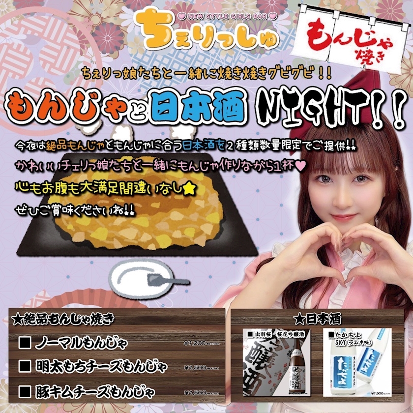 限定日本酒&もんじゃ - ひなの【池袋ちぇりっしゅ】 - NEW STYLE GIRLS BAR ちぇりっしゅ・ニュースタイルガールズバーチェリッシュ - 池袋東口のガールズバー