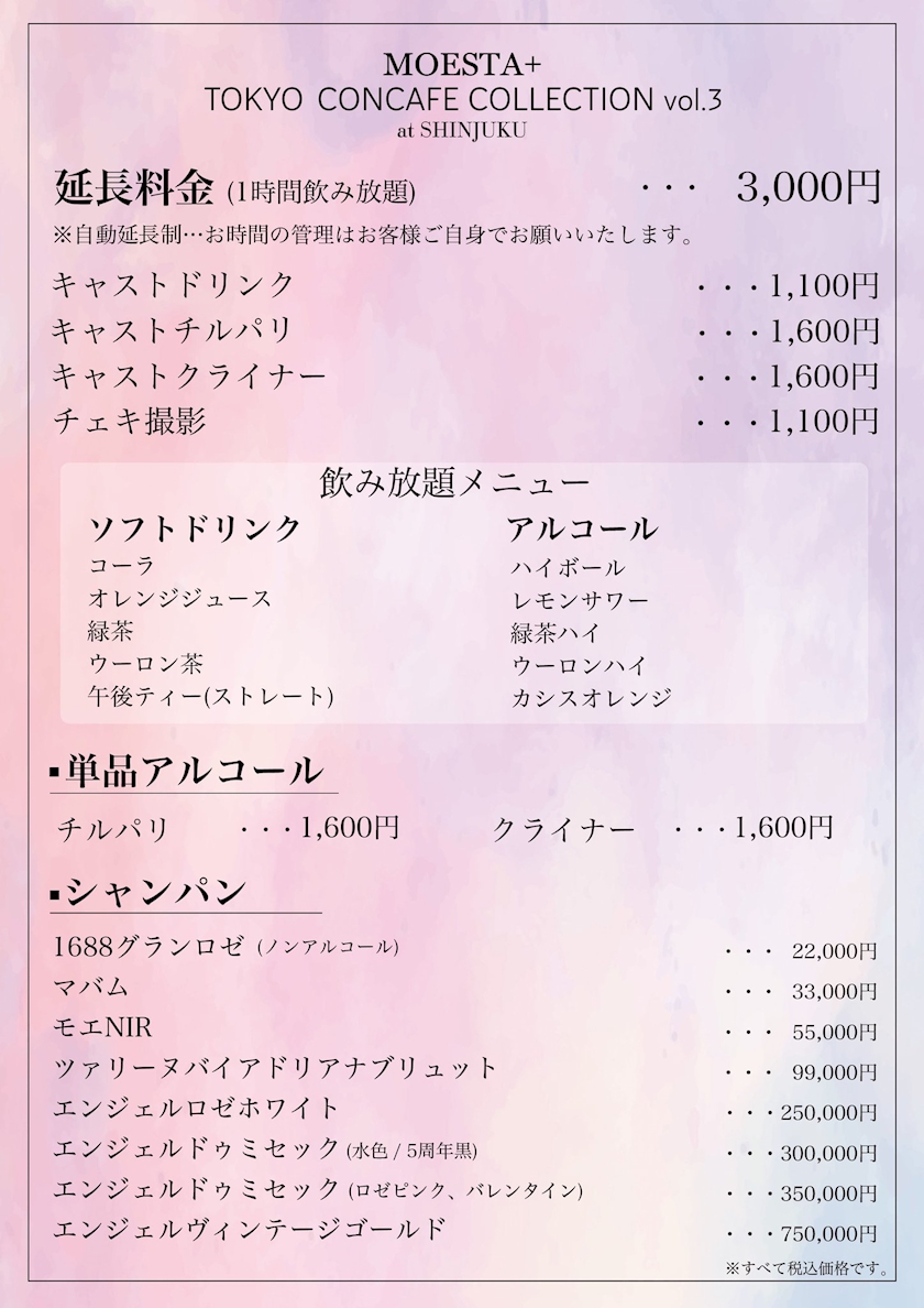 チェキ、シャンパンなどのご注文が