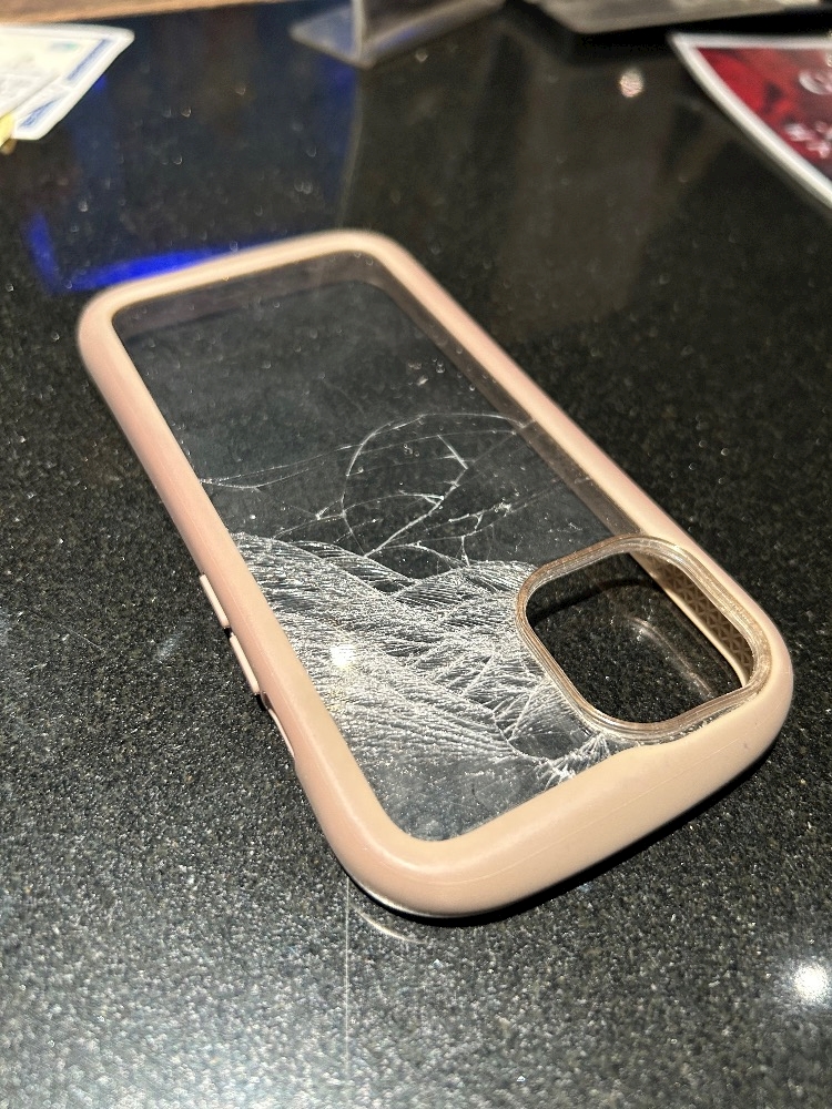 携帯のケースがバキバキに😳😳