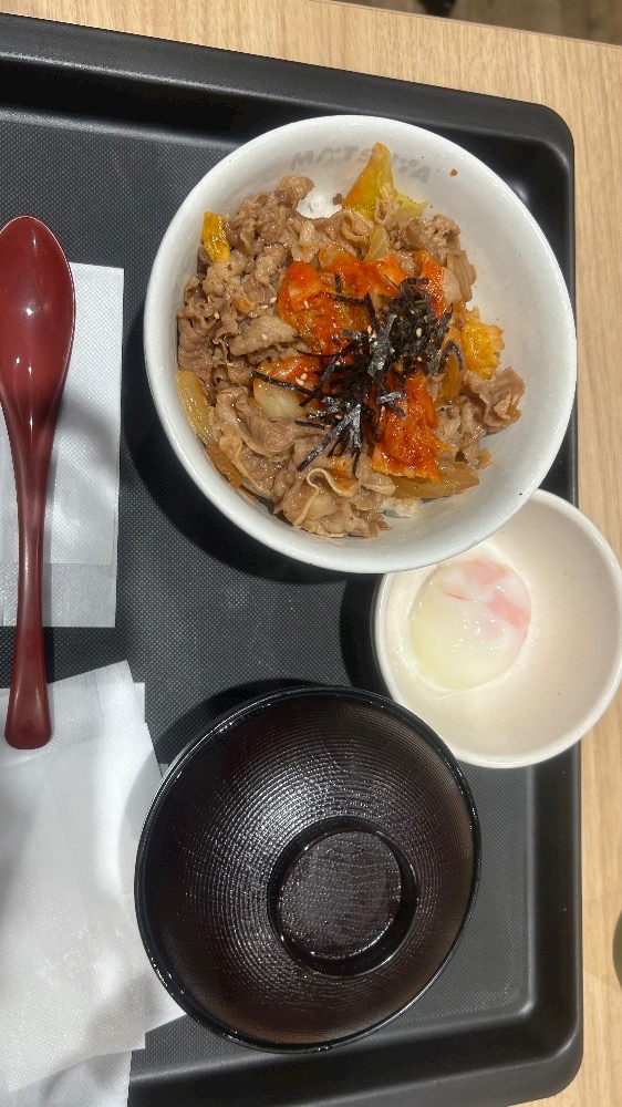 いつもチー牛しか頼まないから今回はキムチ牛丼頼んでみた✌️