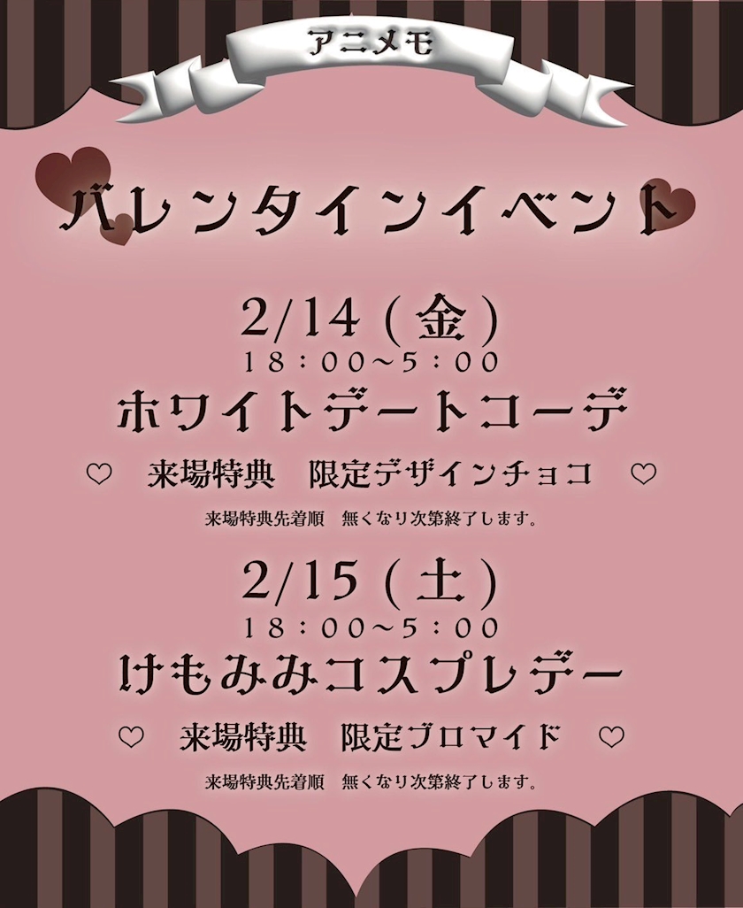 アニメモの来店特典でチョコもらえるので、