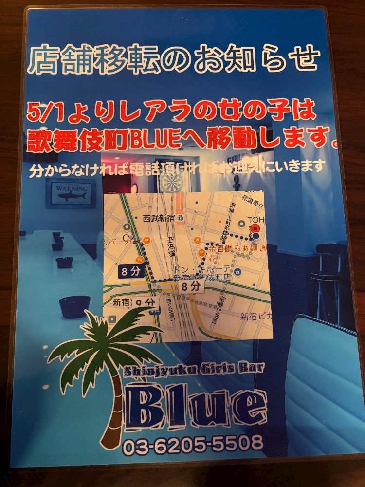 4月30日〜同じ系列店の 歌舞伎町blueへ移動します!