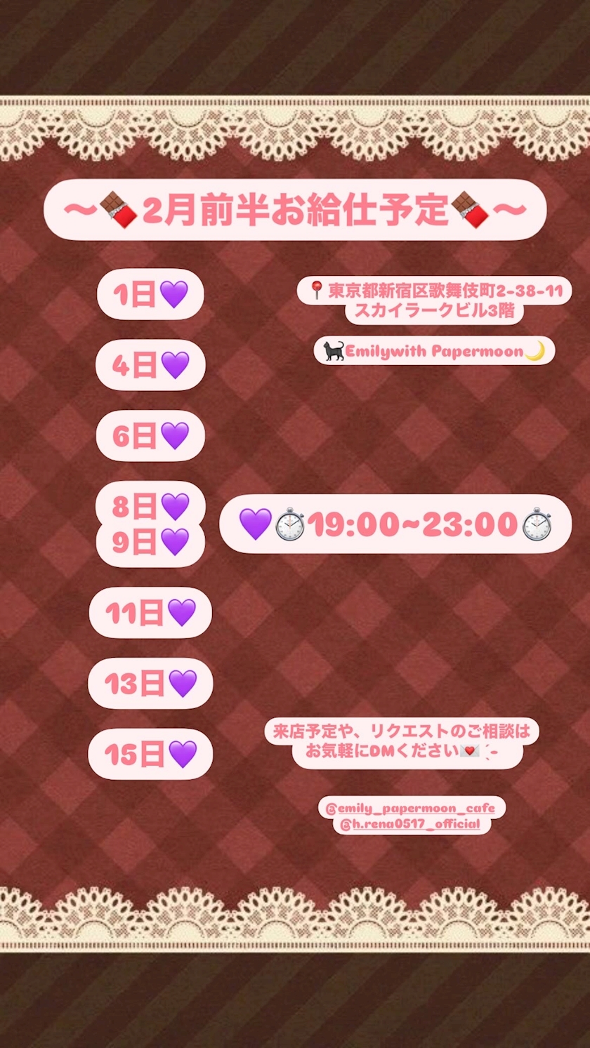 ✨2月前半のお給仕予定✨️ - れな - Emily with Papermoon・エミリーウィズペーパームーン - 歌舞伎町のコンカフェ