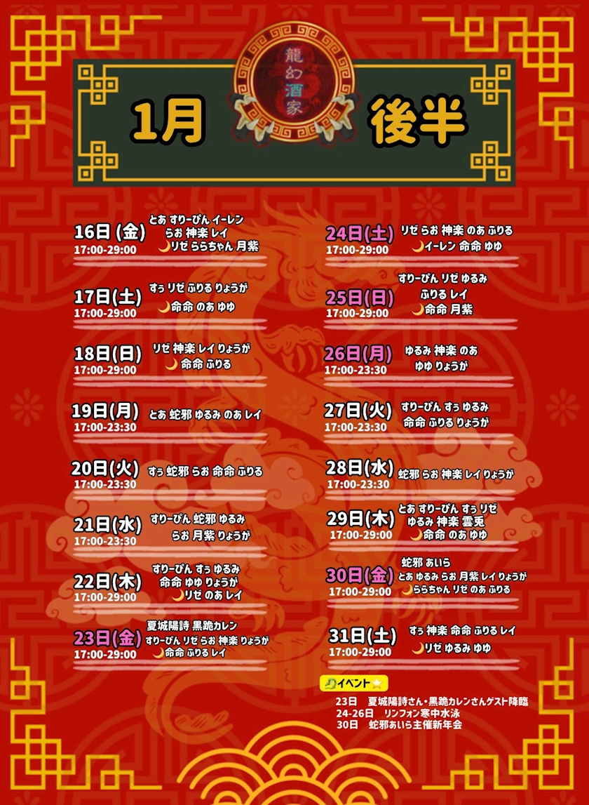🐉1月後半 降臨予定🐉 - ドラゴンマスター☆見習い - 龍幻酒家・リュウゲンシュカ - 歌舞伎町のコンカフェ