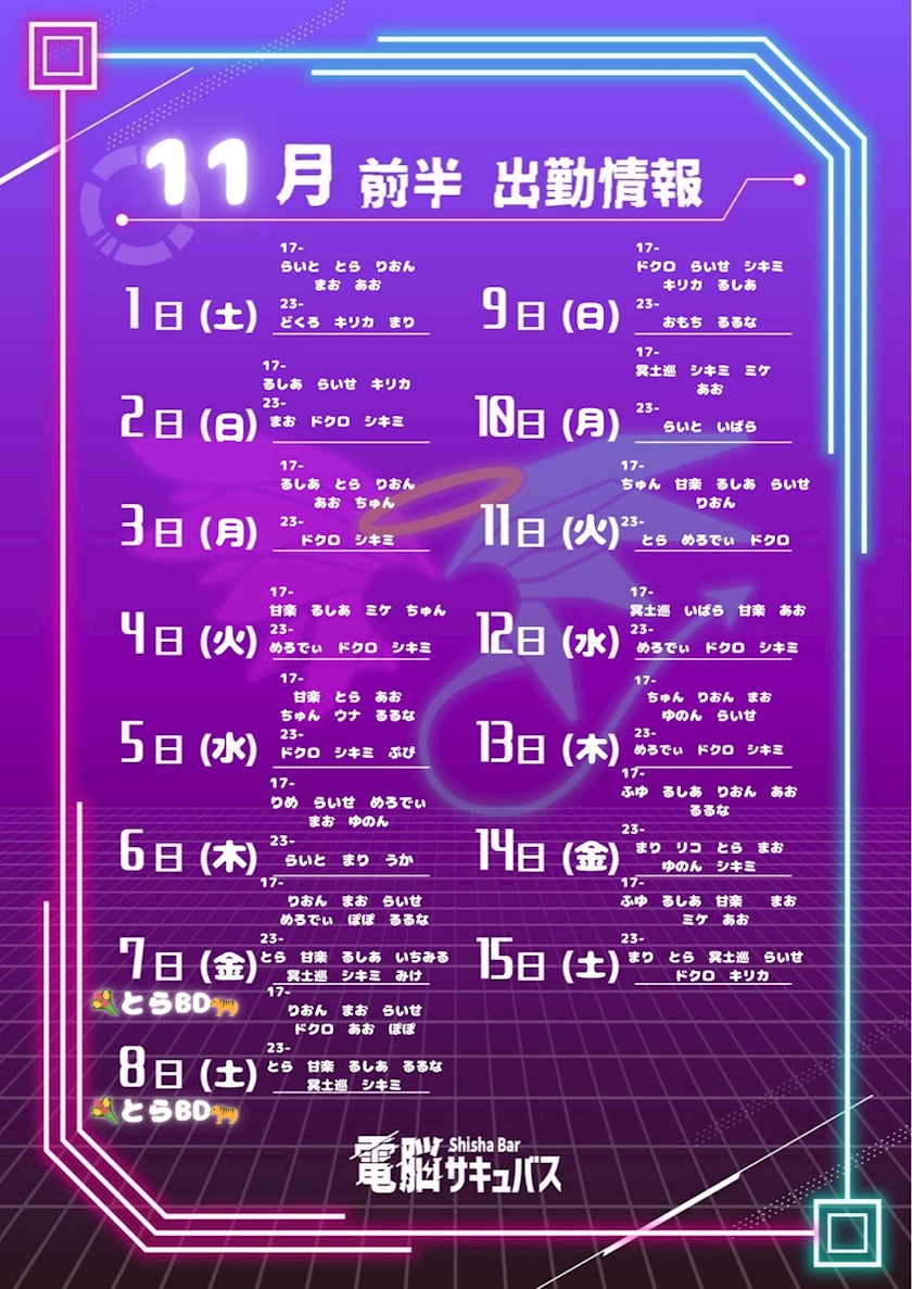 ⚡️11月前半 ログイン予定⚡️ - 電脳デーモン - 電脳サキュバス - 歌舞伎町のコンカフェ