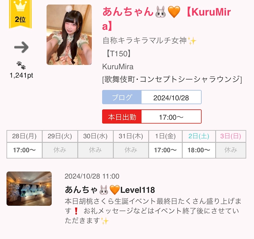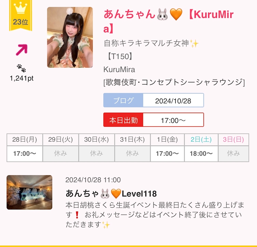 あんちゃ🐰🧡Level118 - あんちゃん - KuruMira・クルミラ - 歌舞伎町のコンカフェ