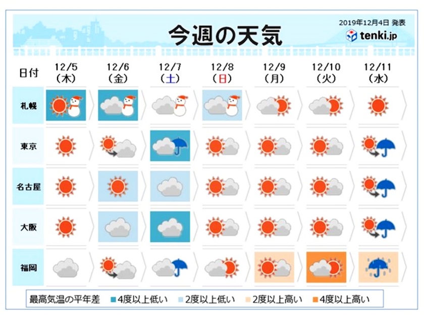 7日(土)は太平洋側では冷たい雨に