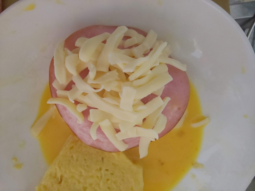 ④パンの間にハムとチーズを挟む