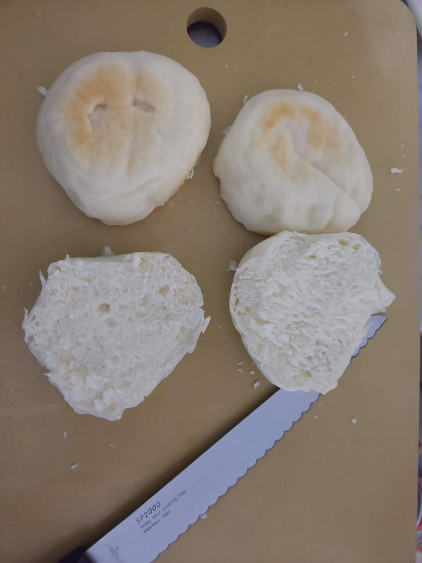①丸いパンを縦半分にスライス