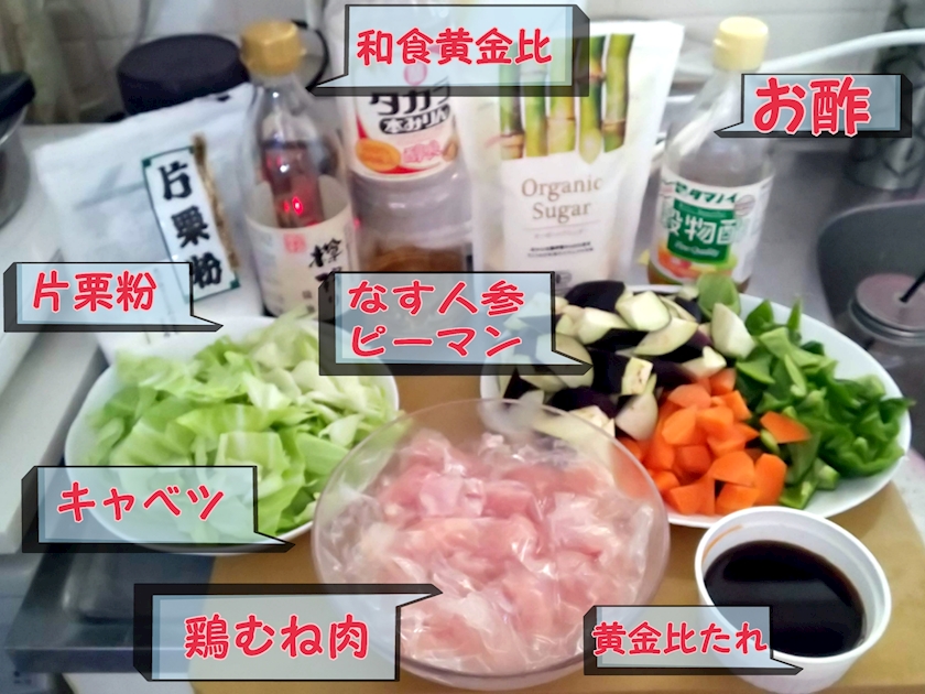 黄金比たれプラスお酢で味付けして