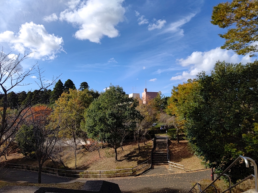 入口付近の芝生の広場から奥に進んでいくと、長い下りの階段があって、そのまま進む