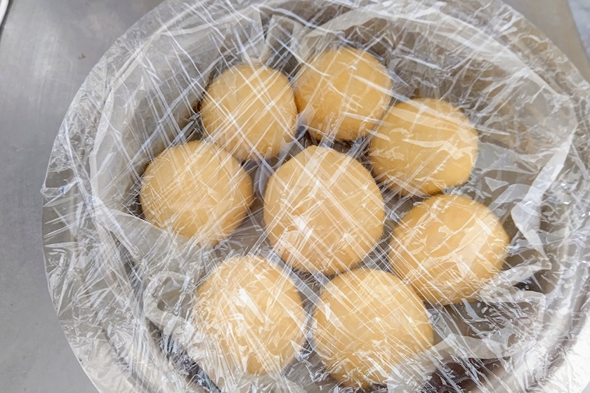 ⑤ベンチタイム終了後に、ラップをして、そのまま冷凍庫へ