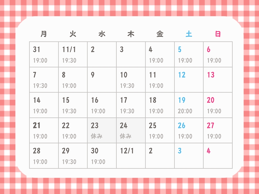 11月出勤予定