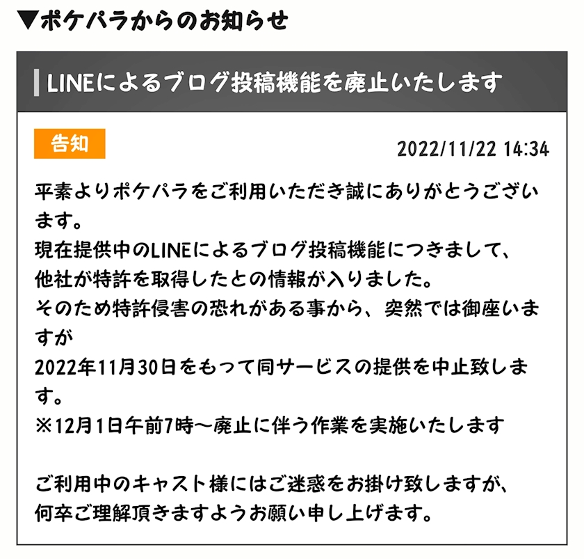 LINE投稿は中止になりましたが
