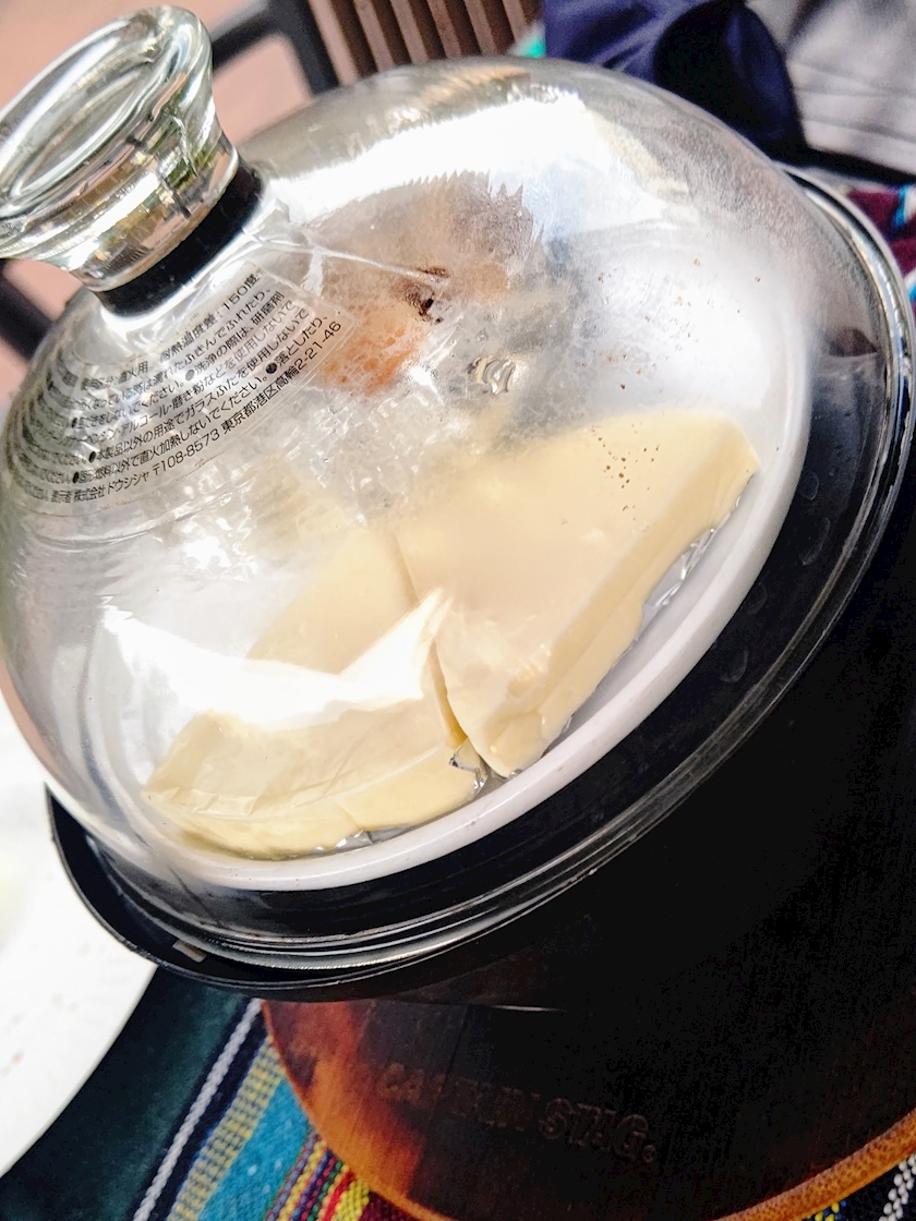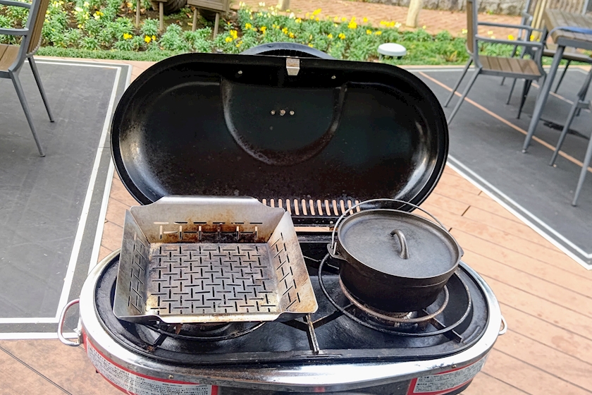燻製器にチーズとミックスナッツを燻す