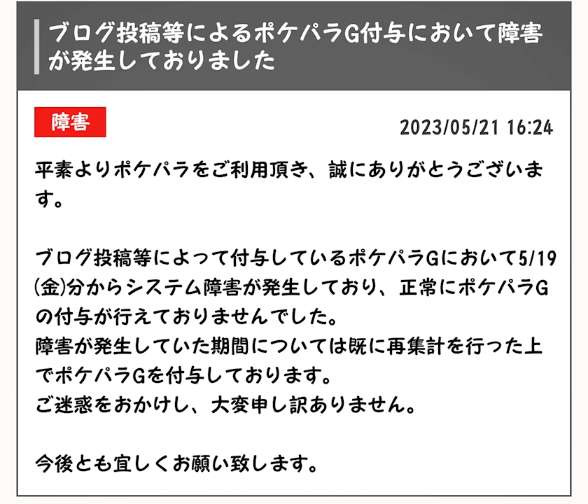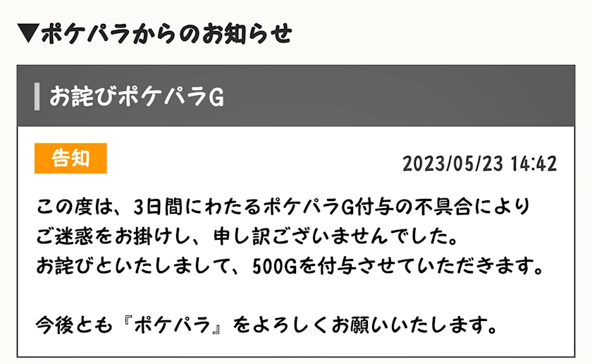 ポケパラさんからポケGのプレゼント