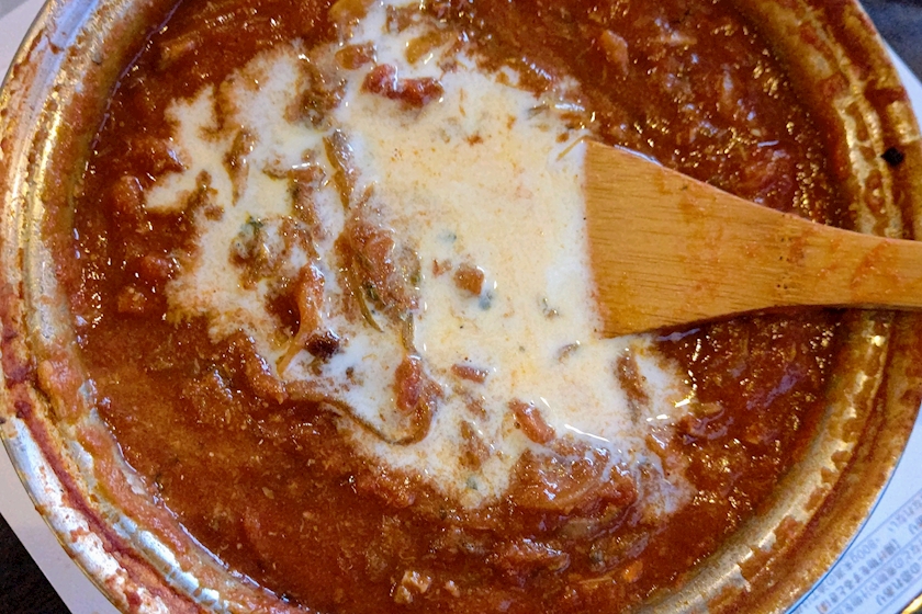 ④仕上げに臭み消しで牛乳を回しかけ完成👍️