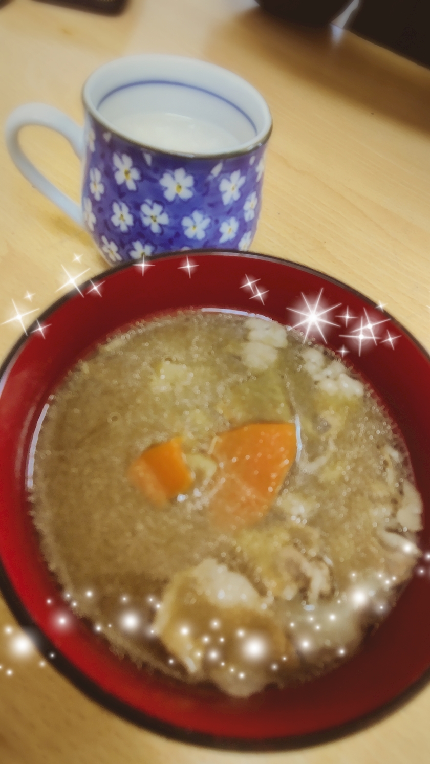 体が温まる豚汁と甘酒をいただく🍵