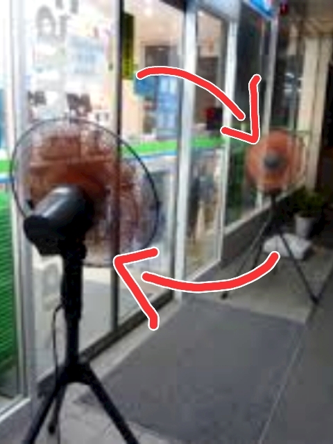 コンビニの入り口大型扇風機
