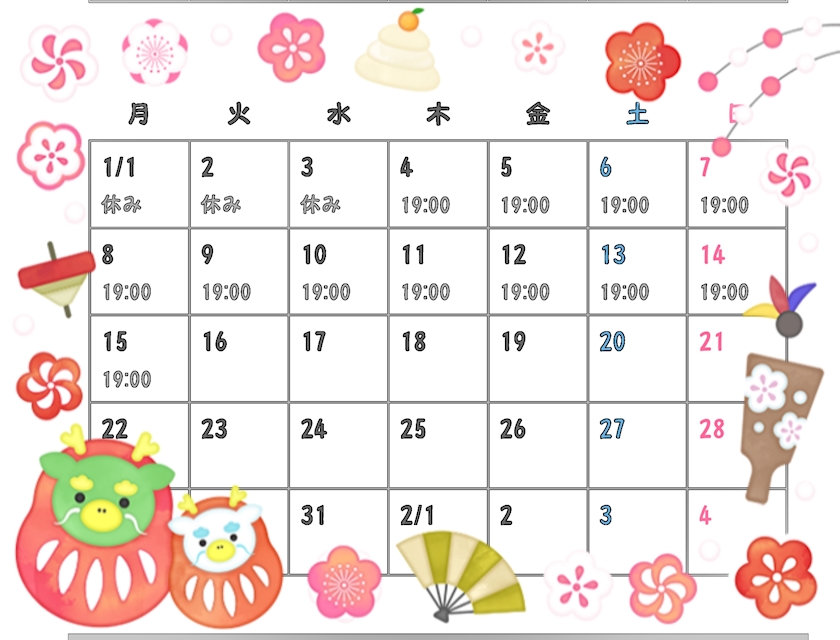 🎍来年1月上期の出勤予定🐉